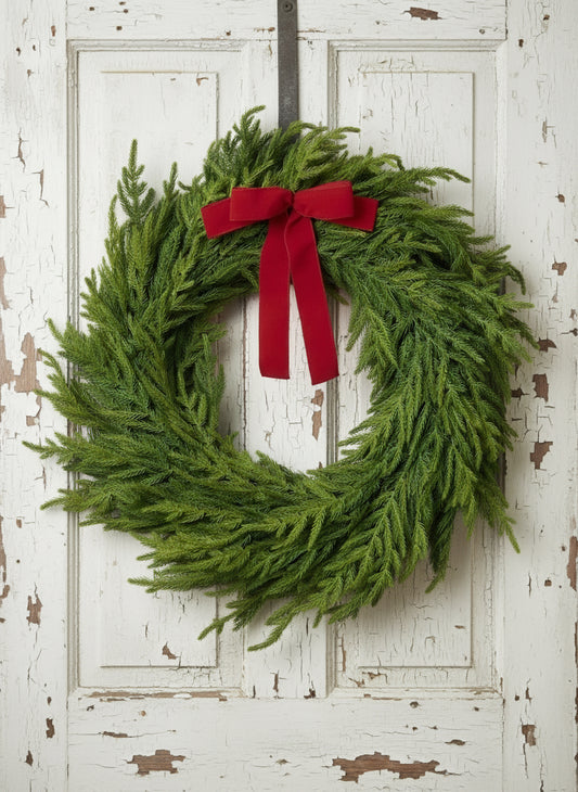 Real Touch Norfolk Pine Wreath with Bow - 30"
