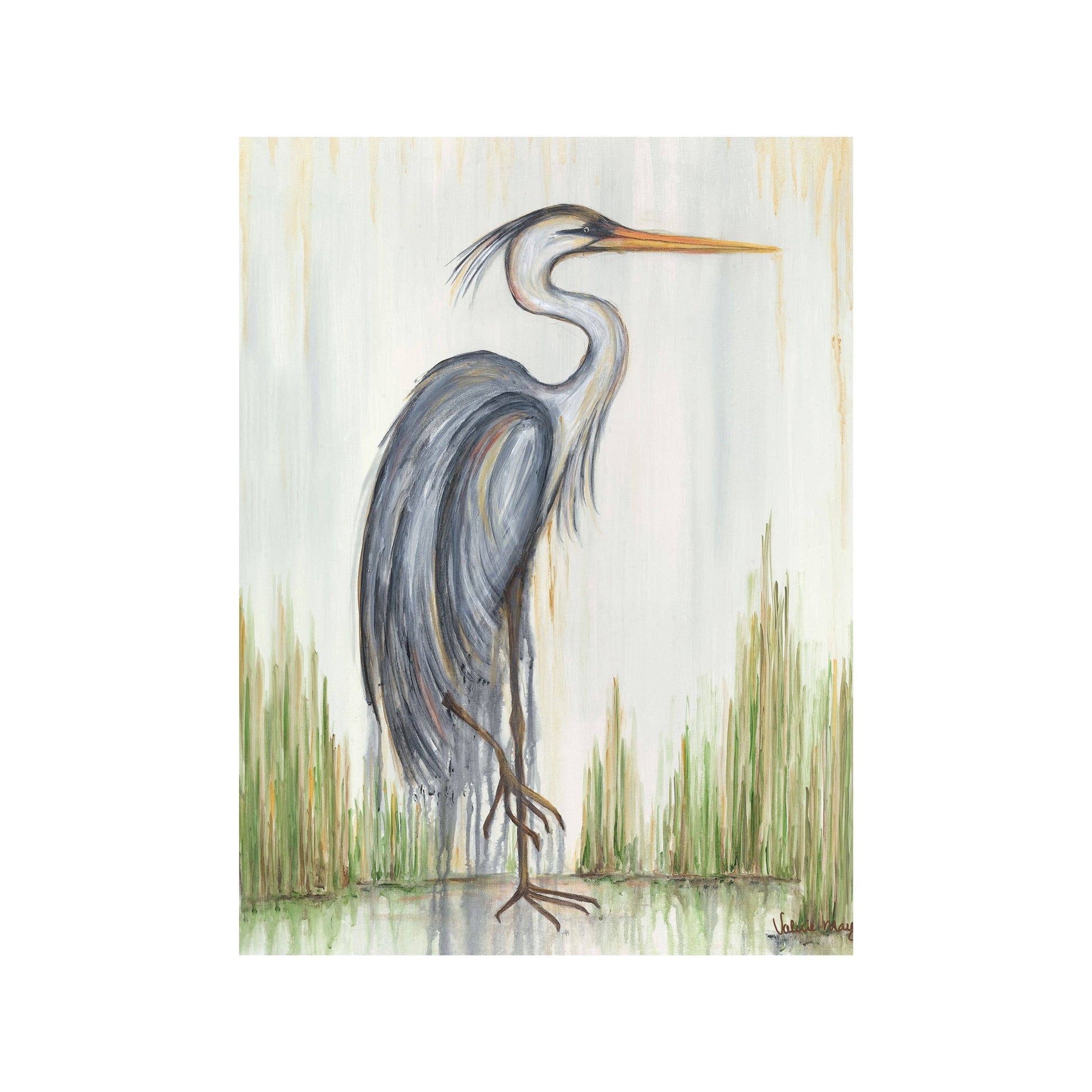 This elegant canvas reproduction features the artwork "Blue Heron I" by Louisiana artist Valerie Marze.