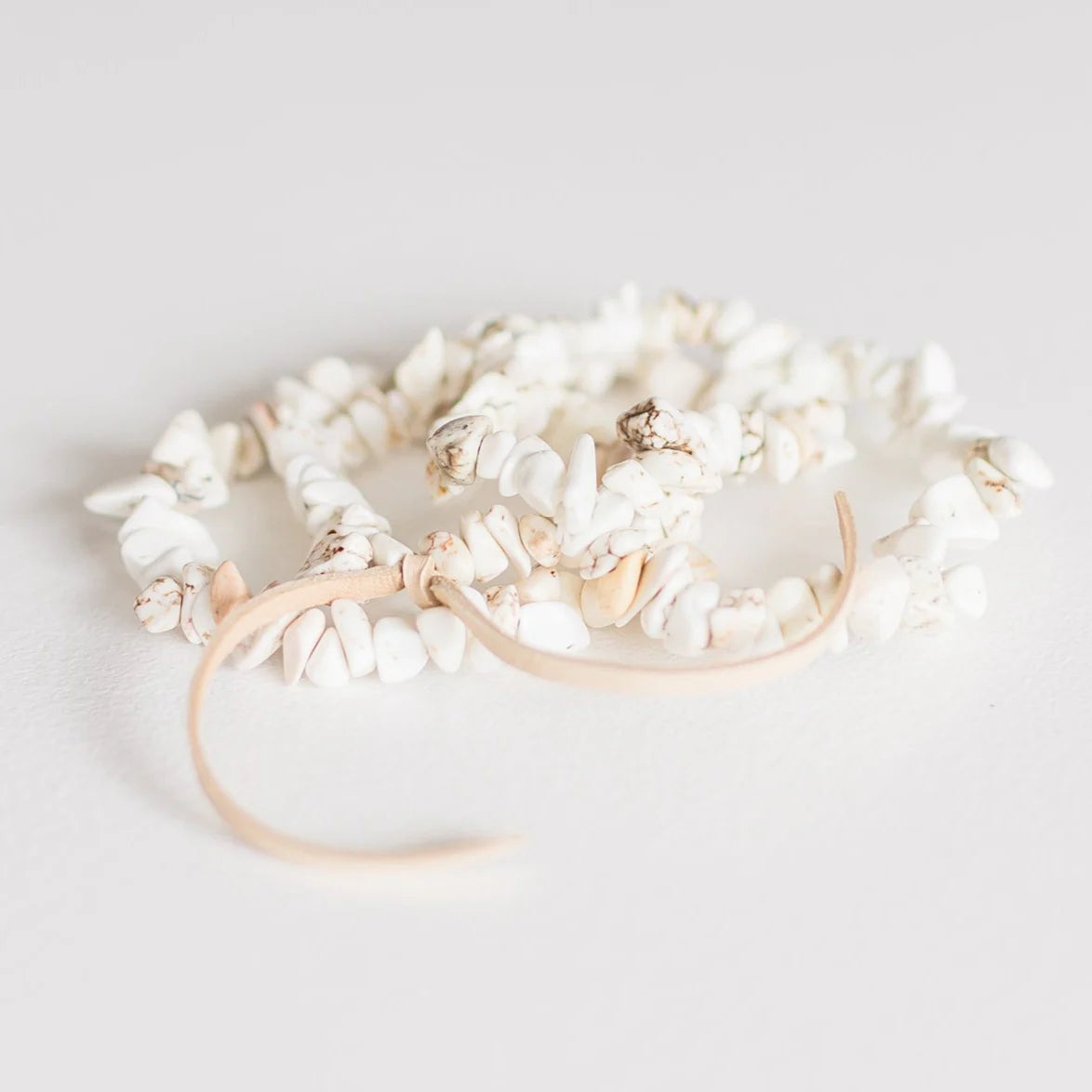 Pair of white turquoise chip stone 7" w deerskin tassel
