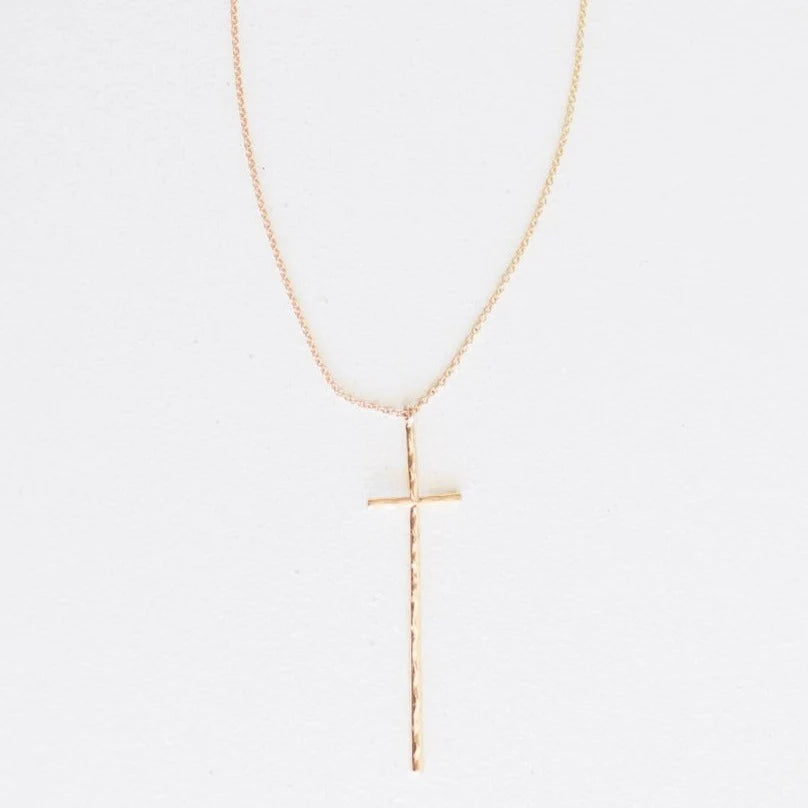 Gold hammered thin cross 2.5" with 14.5" chain and 2" extender
