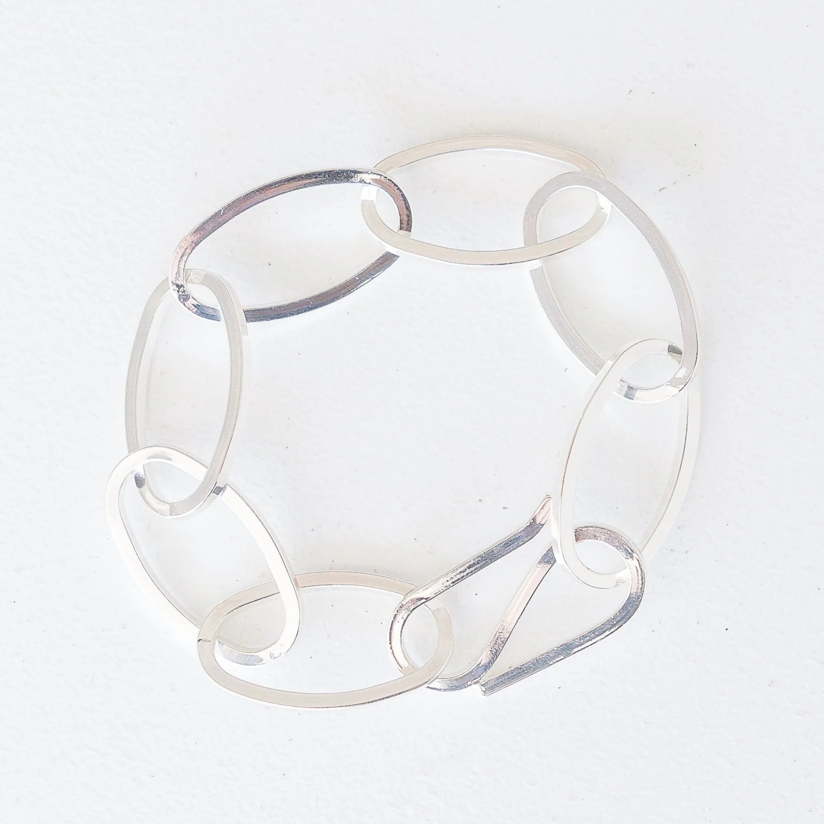 Sleek silver oval chain link, 7.5" with fish hook closure