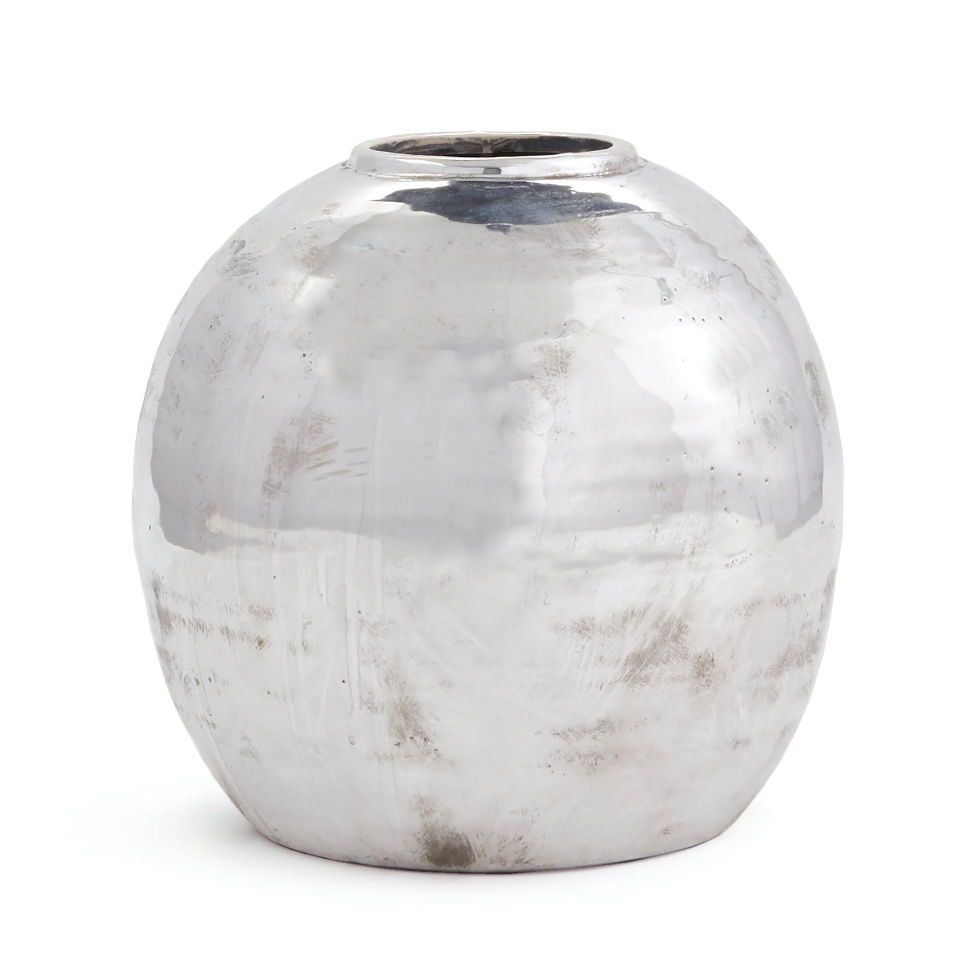 This organically shaped vase is a subtle, simple design. The reflective surface and antiqued finish make this vase a mod accent for the home.